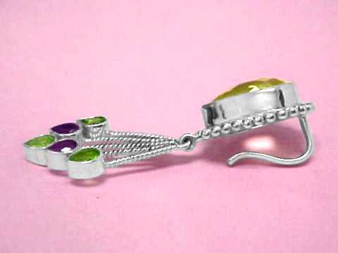 The citrine pendant is 2.6" long x 0.9" wide, each earring is 2.1" long x 0.7" wide