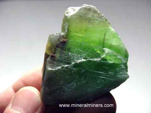 This natural color peridot crystal weighs 77.7 grams (388.5 carats)