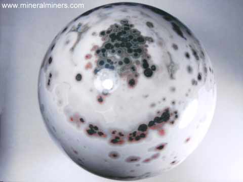 Natural color ocean jasper sphere weighing 9.6 pounds