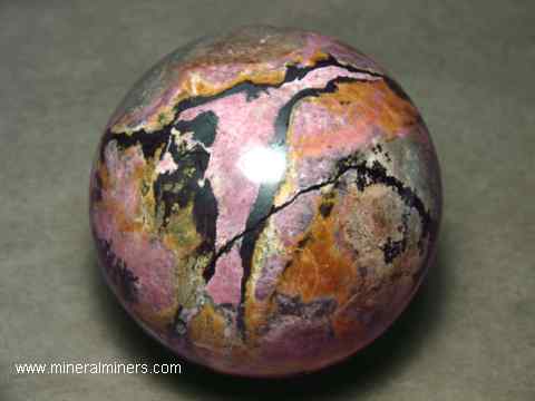 natural color rhodonite sphere weighs 2.0 Lbs
