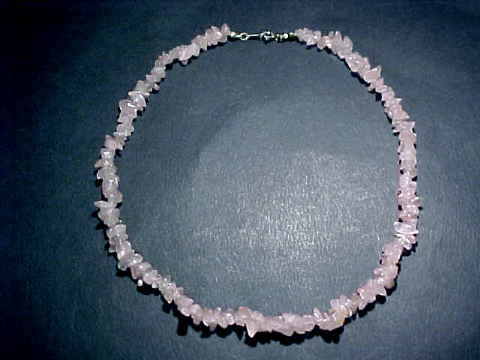 This genuine rose quartz necklace is 18 inches long, beads measure from 6-8mm
