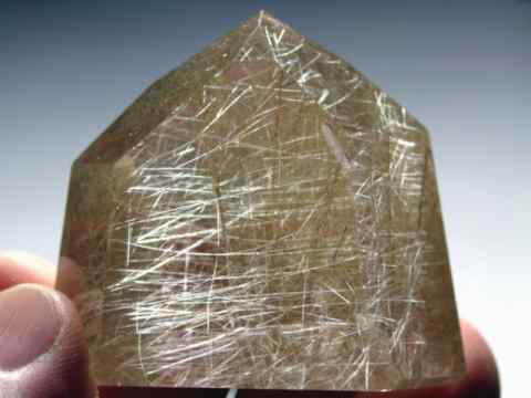 Polished from natural rutile in quartz rough that was found in Brazil
