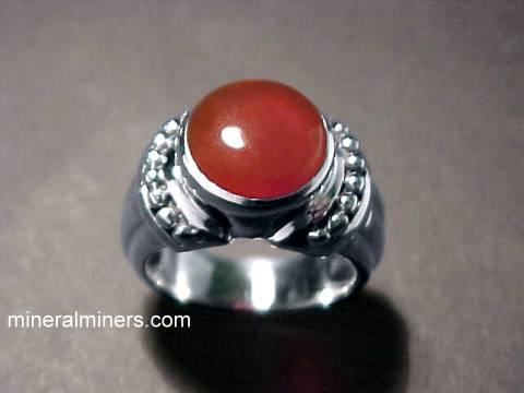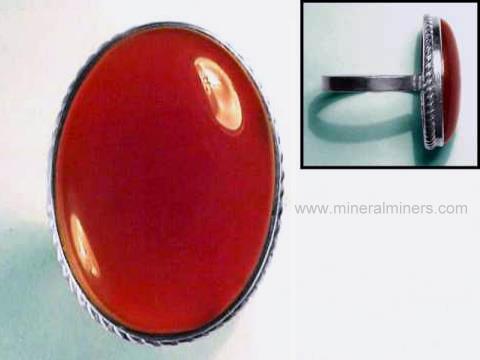 This heavy style carnelian ring was hand-crafted in sterling silver and set with a 12mm round carnelian cabochon gem. This carnelian gem has deep orange-red color under incandescent light! We have this carnelian ring available in two ring sizes. Please see below to order.