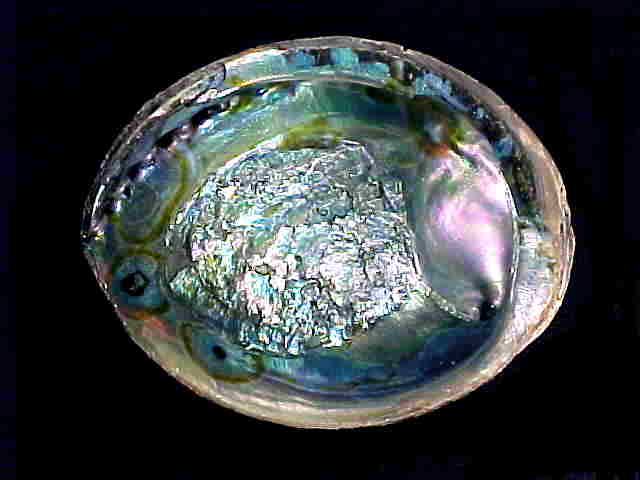 available in two sizes (see below) Natural abalone shells collected in the Pacific Ocean with beautiful iridescent colors in shades of blue-green, silver and pink! These abalone shells are composed primarily of calcium carbonate, which was deposited in thin overlapping layers. Reflected light from these layers causes the colorfull iridescence, which is often referred to as mother-of-pearl. We have these beautiful abalone shells available as a special offer in two sizes; large (6"-6.5"), and extra-large (7"). Please see below to order.