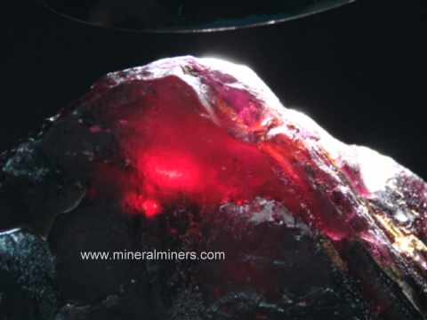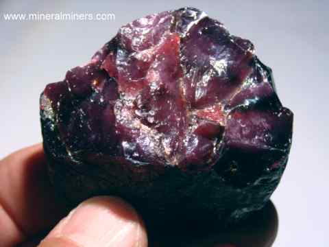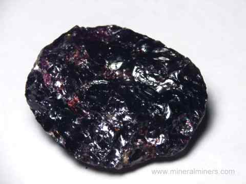 There are many named garnet varieties. The six main garnet varieties are based on ideal end-member chemical compositions. Almandite is the iron (Fe3) rich garnet end-member variety. Some of our almandite garnet gem rough is suitable for making faceted gems, and some for cabochons. Many of our cab-grade alalmandite garnet rough pieces have chatoyancy due to microscopic inclusions of pyroxene or amphibole, yielding a four-ray star when fashioned into a cabochon gem.