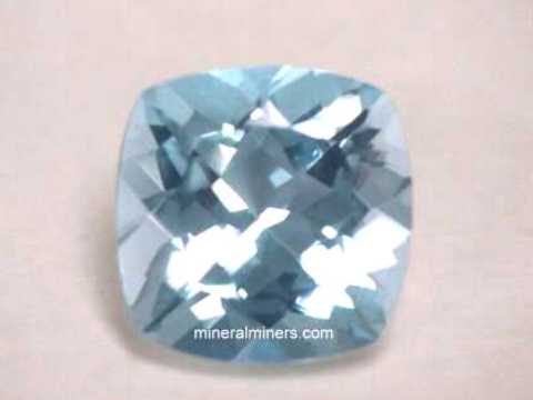 Each one of our aquamarine gemstones is an untreated natural aquamarine gemstone! We don't have any man-made aquamarine or diffusion treated aquamarine - just real untreated aquamarine gems. You may have noticed that some of our aquamarine gems have pale green or greenish-blue color, that is because we do not heat treat any of our aquamarine gemstones. Most Brazilian aquamarine has natural greenish to greenish-blue hues when discovered in the earth. Many gem dealers heat these pale green and greenish-blue color aquamarines to remove the green hues leaving only the pure blue color. Here at mineralminers.com, we do not heat or treat any aquamarine gemstones! We specialize in fine quality natural color aquamarine gemstones, available as faceted gems and also cabochon aquamarine gemstones.