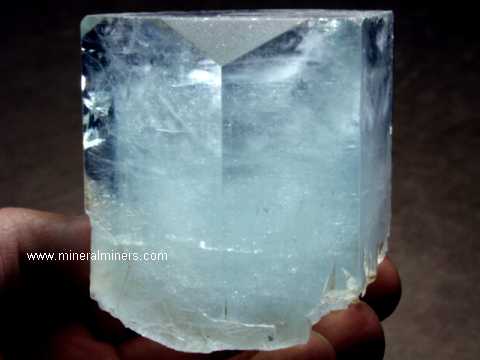 All aquamarine is sold by weight, whether it is an opaque aquamarine mineral specimen sold by the kilogram, or a clear gem-grade aquamarine crystal sold by the gram. The price of a raw aquamarine mineral specimen depends primarily on its transparency, and to a lesser extent on its color. Having natural terminations and hexagonal crystal form also adds to the value of a raw aquamarine mineral specimen. As the color of an aquamarine mineral specimen increases from pale color to strong color, the price increases by several times. As the transparency of an aquamarine mineral specimen increases from opaque to translucent to transparent to flawless, the value increases by about 1000 times! The aquamarine price increases by about ten times as the transparency improves through each of the following stages: the value increases by about 10 x's from translucent to semi-transparent, by another 10 times from semi-transparent to transparent, and again another 10 times increase in value from transparent to flawless. As an example, compare a translucent blue-green rough aquamarine mineral specimen with a market value of $150/kilogram to a flawless clear aquamarine crystal of the same color with a market value of $150/gram ($150000/kilogram) that will yield flawless aquamarine gemstones with a market value of over $150/carat!