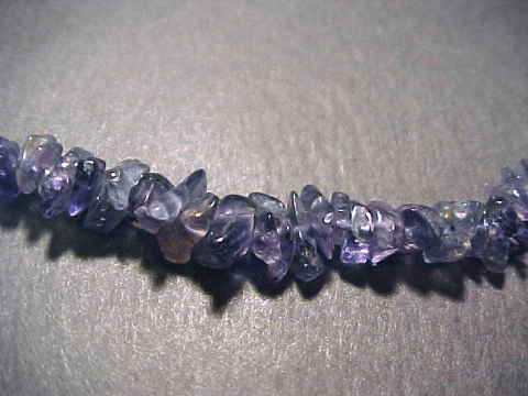 Natural amethyst pieces from Africa with rich dark color and superior transparency were tumbled and polished in baroque shapes, and then drilled and strung in this 36" (90mm) "endless" amethyst necklace. There are approximately 300 drilled baroque beads in each of these untreated amethyst necklaces! The photo at left shows a close-up view. See also a full view of this natural amethyst necklace. These baroque bead amethyst necklaces make great gifts. We have two approximate diameter sizes available (see below): 5mm long, and also 7-8mm long.