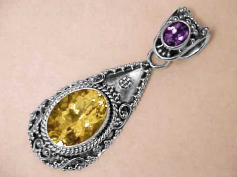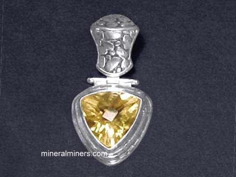 We offer a large variety of handcrafted styles and sizes available in citrine bracelets, pendants, earrings, and necklaces. We do have many different styles and sizes available in handcrafted citrine rings set in 925 sterling silver. We even have some giant size natural color citrine pendants that are set with faceted gemstones of natural color citrine weighing over 100 carats! Information about natural citrine and its history, physical properties, chemistry, occurance, and metaphysical uses can be found on our citrine information page.