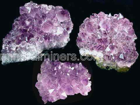 The upper surface of these natural color Brazilian amethyst specimens are covered with beautiful medium purple naturally terminated amethyst crystals. These natural color amethyst crystals show pyramidal terminations and some prismatic terminations. Many of these amethyst crystals have facet grade transparency at their tips! The amethyst crystals on these matrix specimens have very good vitreous luster. These genuine amethyst crystals on matrix pieces make great specimens at very affordable prices. We have them available in 3.5 inch long pieces, 4.5 inch long pieces, and in 5.5 inch pieces. Please see below to order.