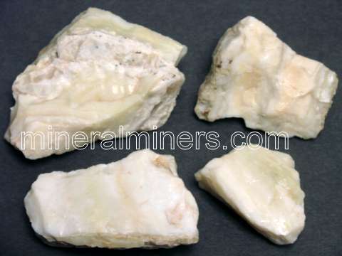 These natural opal specimens have thick layers of common opal in shades with white, tan, and pale yellow-green (completely natural untreated colors) with large areas of very nice cabochon gem grade. The photo at left is viewed under incandescent light. We have these natural common opal specimens available in small to medium sizes that are perfect for mineral collections, as samples for classroom study, and for metaphysical use. Please see below to order.