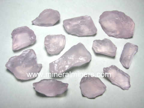 These rare quality natural rose quartz rough specimens have gem grade transparency with very pale rose-pink natural color! These rose quartz rough pieces have natural asterism with large areas of rare gem-grade transparency inside. Each piece would yield faceted gemstones or cabochons. Each of these pale pink rose quartz specimens is 100% natural - they have not been heated or treated in any way. They make great specimens of natural gem-grade rose quartz just as they are, although each piece has areas inside that could be ground & polished into beautiful gemstones as well. They also are very popular today for metaphysical use - Rose quartz is said to balance the emotions, thus giving inner peace and harmony, and to enhance one's sensitivity to beauty, art and music. Rose quartz is also said to calm aggression and resentment while increasing self-esteem and self-confidence, and to enhance one's compassion, patience and forgiveness. Rose quartz is also said to enhance your capacity to love others and yourself.