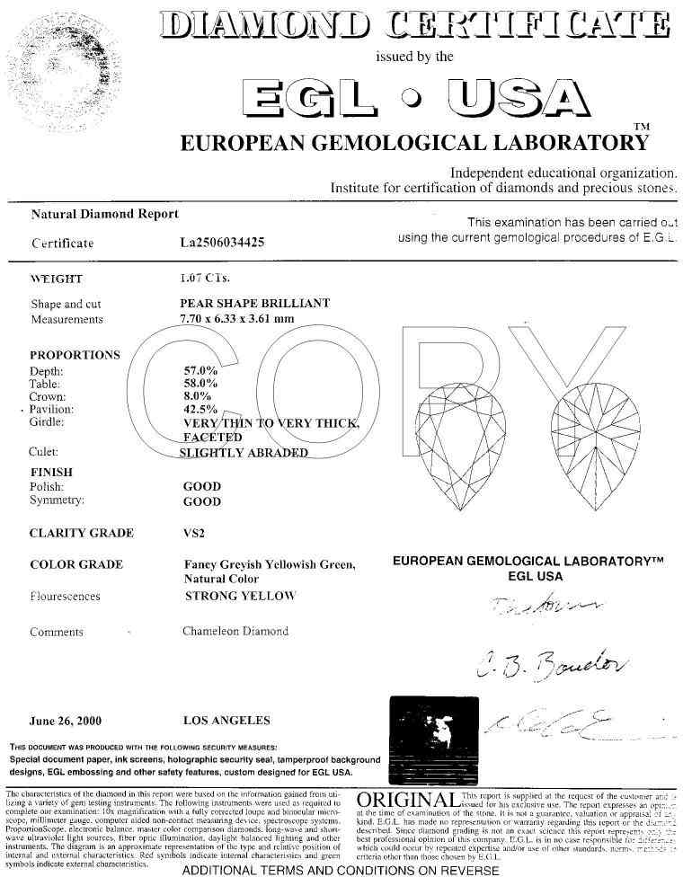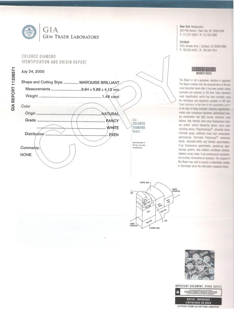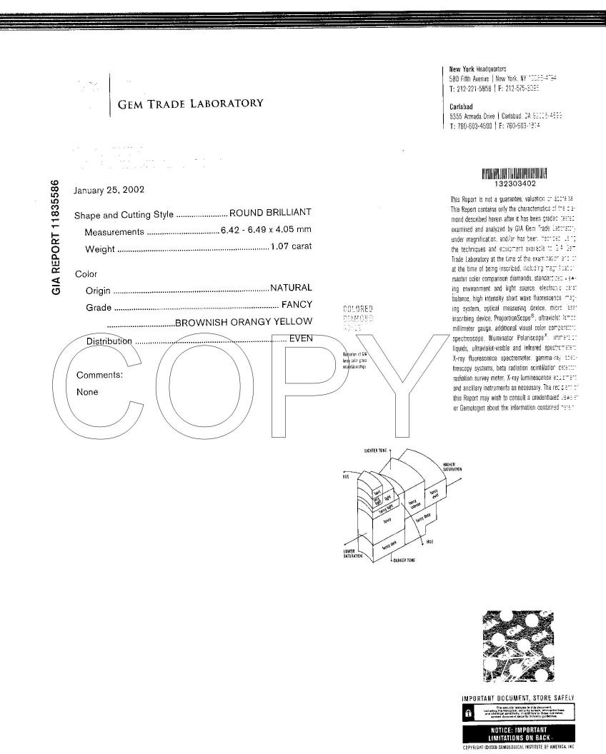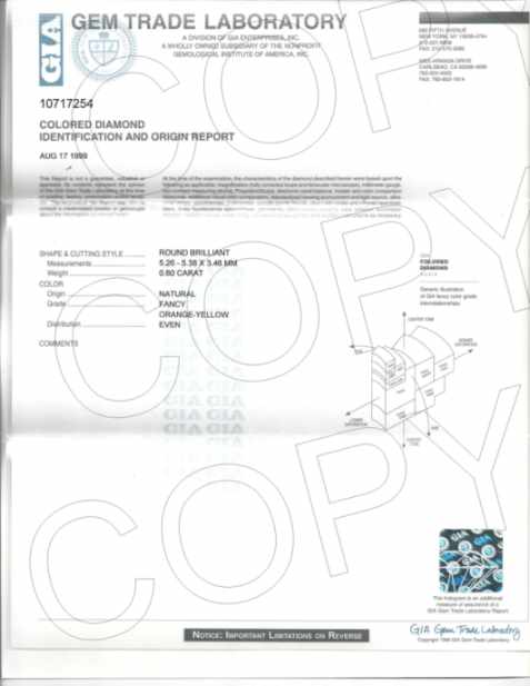 Each of our natural fancy color diamonds has a Diamond Certificate from the Gemological Institute of America