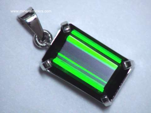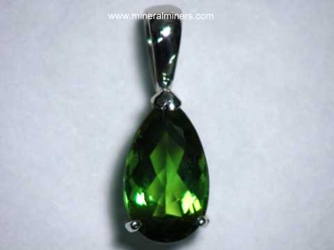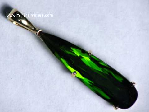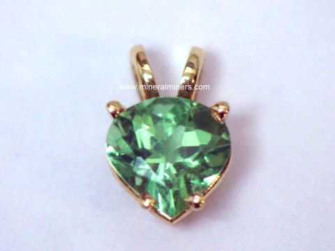 Each of our green tourmaline necklaces is set with natural color untreated green tourmaline gemstones that were mined in Brazil, Africa, or Madagascar. Here at mineralminers.com, we do not have any lab-created green tourmalines, and we do not have any diffusion treated or heat treated green tourmalines! We specialize in genuine natural color green tourmaline necklaces that were faceted from natural green tourmaline crystals. Most of our green tourmaline necklaces are set in solid 14k gold, and we also have 925 sterling silver green tourmaline necklace designs. We have natural green tourmaline necklaces available in beautiful shades of light green to dark green tourmaline with all natural colors. We have a large selection of sizes and shapes available as well in fine green tourmaline rings.