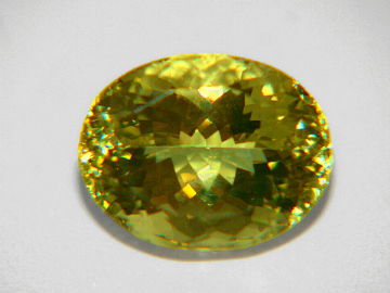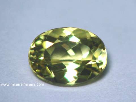 This natural heliodor gem was faceted from a natural color heliodor crystal mined at Padre Paraiso, Brazil in the year 2000. This oval shape gem is well cut with good brilliance. It is completely clean even under very close inspection, and it has very nice light to medium yellow natural color.