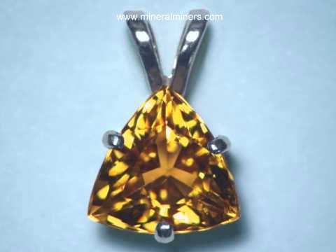 This 14k white gold pendant has 1.47 grams of 14k gold! This pendant is set with a triangular faceted golden beryl gemstone with very beautiful golden natural color. Using the "World of Color" grading system, this natural beryl gemstone has moderate orange yellow natural color with a Munsell notation of 10YR 8/7. This beautiful golden beryl gem faces up clean with very good brilliance! See also a side view of this natural golden beryl pendant.
