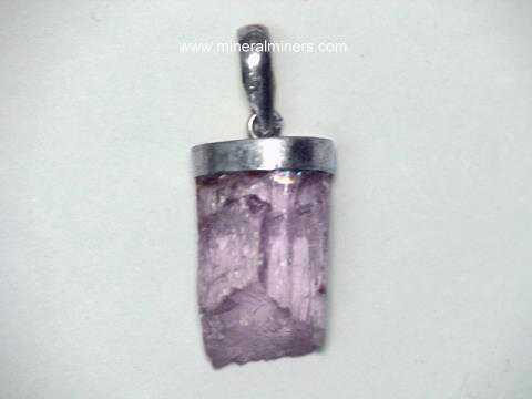 See also our page displaying natural color kunzite crystals. Some of our kunzite crystals and kunzite mineral specimens actually have gem-grade areas inside that would yield beautiful kunzite gemstones! Our kunzite jewley items are all natural color pink kunzite jewelry designs!
