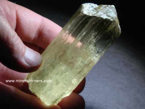 Each one of our kunzite crystals is completely natural, and they were mined in either Brazil or Afghanistan. You may have noticed that some of our kunzite crystals have pale pink color and others have pale yellow color. These are natural kunzite colors. Here at mineralminers.com, we do not have any heated or treated kunzite crystals, each crystal is 100% natural! We specialize in rare quality natural kunzite crystals with gem grade transparency, and we do have more kunzite crystals in stock, including some very rare quality kunzite crystals and some very large kunzite decorator crystal specimens. We also have small kunzite mineral specimens available, and we are offering special volume discounts on these inexpensive kunzite specimens as well!