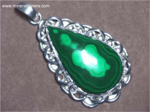 malachite pendants, rings, malachite necklaces, and malachite bracelets