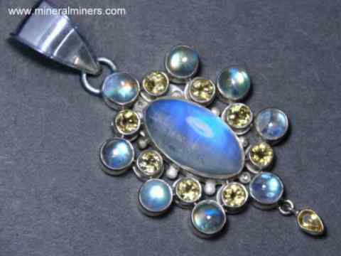 when we add on this page more genuine rainbow moonstone jewelry, champagne moonstone pendants, and blue-flash moonstone jewelry designs set into pendants and blue moonstone rings?