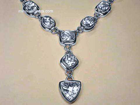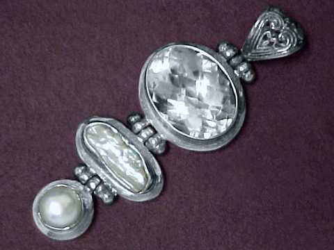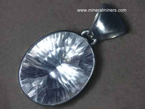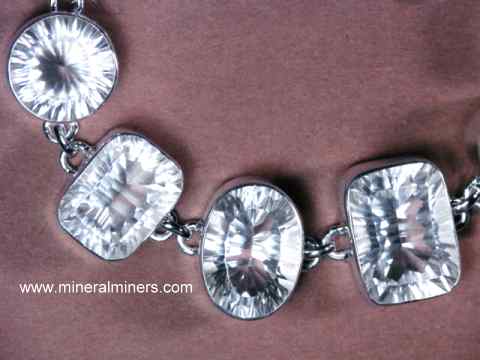 Each one of our quartz crystal jewelry items is set with natural quartz crystal gemstones! We have quartz crystal jewelry items available with cabochon gems of natural quartz crystal (natural rock crystal cabochons), and we also have faceted gemstone jewelry items set with natural quartz crystal gems. We have a large selection of beautiful quartz crystal jewelry designs set in pure sterling silver including quartz crystal necklaces, quartz crystal bracelets, and quartz crystal pendants - each one hand crafted and set in sterling silver with gemstones polished from natural quartz crystals that were mined in Brazil.