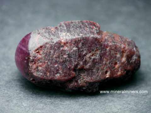 This natural unheated ruby mineral specimen is a partially terminated ruby crystal with deep purplish-red natural color. It has tabular hexagonal crystal form and cabochon gem grade translucency.