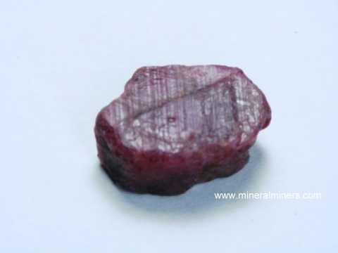 Ruby commonly forms as both tabular crystals and prismatic crystals terminated by basal pinacoids. Ruby often occurs as tapering hexagonal pyramidal crystals with a barrel-shaped form. The prismatic faces of ruby crystals frequently have deep horizontal striations.
