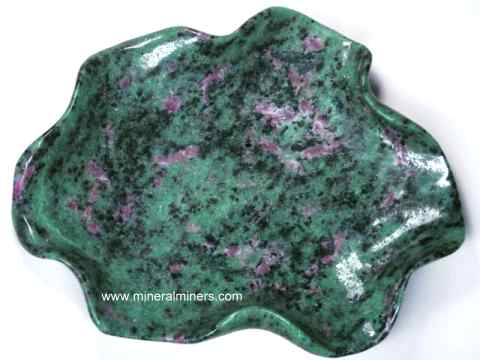 Ruby occurs in nature as pinkish-red to red to purplish-red corundum. In some unusual geologic settings, a strongly colored host rock can make an attractive color contrast with its embedded ruby crystals making the ruby containing rock an attractive lapidary material for making jewelry & other collectable handcrafted items such as mineral spheres. A popular example of this is ruby in zoisite with deep red ruby crystals in a bright green zoisite matrix. Be sure to see our handcrafted ruby in zoisite jewelry! Another popular example of lapidary grade ruby containing rock is ruby in green fuchsite - see a selection of collectable ruby in fuchsite spheres.