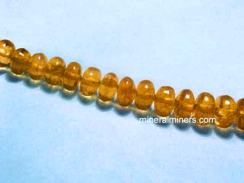 This natural mandarin garnet necklace is strung with faceted orange garnet beads that were hand-crafted from natural color mandarin spessartite garnets mined in Nigeria. These superior quality mandarin spessartite garnets were shaped into rounded, disk shaped beads which were then faceted, drilled and strung into this fine quality 18" long mandarin garnet necklace with a sterling silver clasp. These beautiful bright orange garnet beads are gradational in size. The photo at left shows a close-up view,