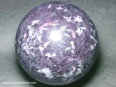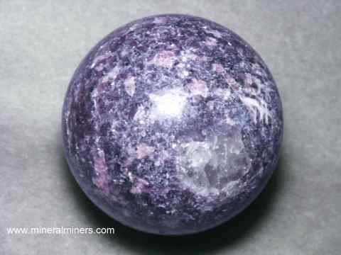 See also our pages displaying lepidolite mineral specimens and lepidolite spheres.
